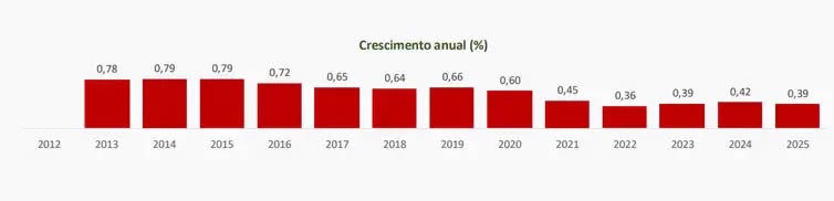 A população brasileira está envelhecendo e cresce em ritmo cada vez menor. É o que mostra a Pesquisa Nacional por Amostra de Domicílios Contínua (Pnad) 2025, divulgada nesta sexta-feira (17) pelo Instituto Brasileiro de Geografia e Estatística (IBGE).