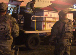 Sob forte aparato de segurança, avião foi recebido por equipes da Polícia Federal e Agentes Sanitários
