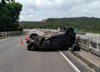 Condutor teria cochilado de acordo com o Batalhão de Polícia Rodoviária FOTO: BPRV Um acidente terminou em capotamento na AL 101 Sul, durante a manhã...