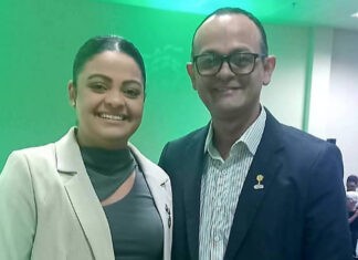 Caroline Leite - Secretaria da Primeira Infância de Alagoas ao lado do vice-presidente do Conselho Estadual dos Direitos da Criança e do Adolescente CEDCA/AL, Arquimedes Washington