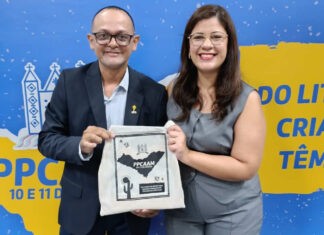 Presidente do FEACECTAL, Arquimedes Washington ao lado da presidente do CONANDA, Deila Martins - FOTO: Assessoria