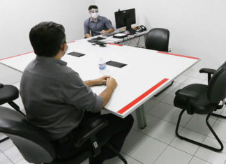 Sala passiva só é ocupada pelo próprio depoente e um servidor, que permanecem afastados. Fotos:...