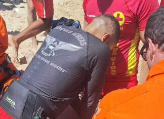 Vítima foi retirada da água com o auxílio de surfistas no local