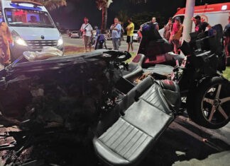 Acidente impressionou pela destruição causada após colisão com coqueiro