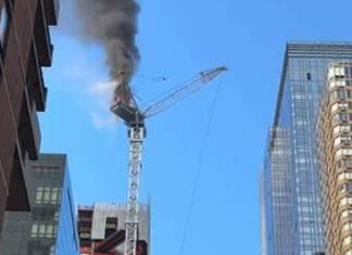 Braço de guindaste se solta da estrutura e bate em prédio vizinho