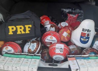 Policiais Rodoviários Federais prenderam, na tarde de ontem (19), três pessoas e apreenderam mercadorias que...