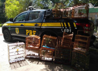 Pássaros e gaiolas apreendidas pela PRF - (FOTO: NUCOM PRF/AL)