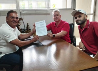 Prefeito George Clemente, vereador Diney Torres e o servidor da UNEAL, Prof. Elder Melo - FOTO: Assessoria