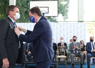 (Rio de Janeiro - RJ, 14/08/2020) O Presidente da República recebe, do Secretário Municipal de Ordem Pública, a Medalha Zenóbio...