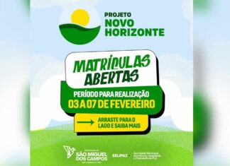 Na próxima segunda-feira, 3 de fevereiro, a Prefeitura de São Miguel dos Campos, por meio da Secretaria da Infância, Juventude e Promoção da Paz (SEIJPAZ), dará início...
