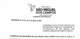 São Miguel dos Campos terá ponto facultativo na próxima sexta-feira (04)