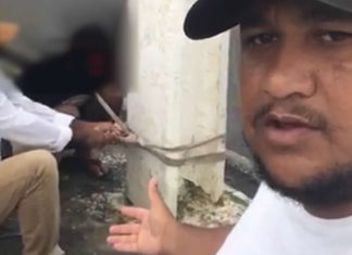 Homem é amarrado por famíliares em poste, fato ocorreu após uma tentativa de ataque...