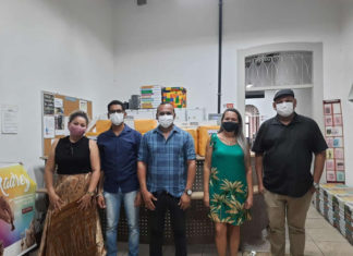 O secretário municipal de Cultura, André Vieira, acompanhado da diretora da Biblioteca Municipal Monsenhor Hildebrando Guimarães, Rita Mendes, e de colaboradores da Secretaria Municipal de Cultura (Secult)...