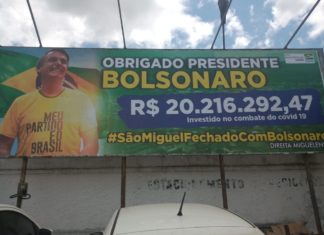 Outdoors pró-Bolsonaro espalhados por São Miguel dos Campos apontam o valor de R$ 20.216.292,47 (Vinte Milhões,...