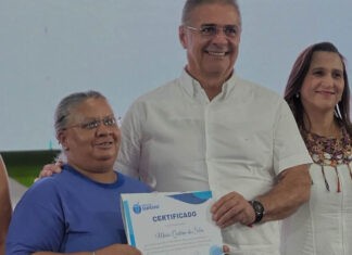 Prefeito George Clemente entrega certificado de conclusão a aluna do EJA