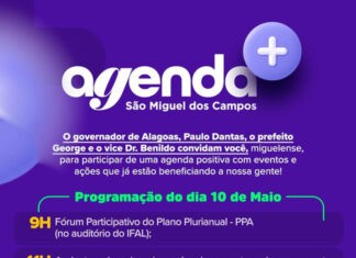 O prefeito de São Miguel dos Campos, George Clemente, e o vice Dr. Benildo, receberão nesta quarta-feira, 10 de maio, o governador de Alagoas, Paulo Dantas, para...
