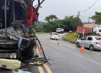 [VÍDEO] Acidente entre ônibus e caçamba deixa pelo menos oito pessoas feridas em Satuba