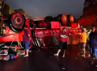 Caminhão tomba na BR 101 em Joaquim Gomes, condutor ficou ferido