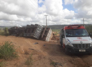 Carreta tomba parcialmente na BR 104 em Rio Largo
