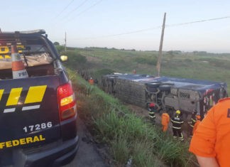 Ônibus do cantor Devinho Novaes tomba com 22 pessoas na BR 101 em São...