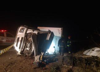 Ultrapassagem entre carretas, termina com tombamento na BR 423 em Delmiro Gouveia