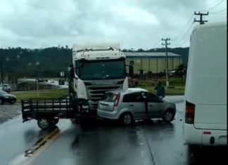 Carro e carreta colidem na BR 101 em São Miguel dos Campos; vídeo