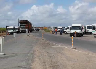 Protesto realizado na BR 101 em São Miguel dos Campos (FOTO: Reprodução)