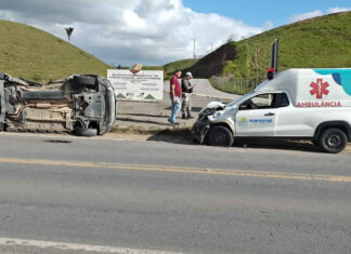 Vítimas são socorridas logo após colisão envolvendo ambulância e carro de passeio em Matriz...