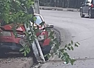 Veículo arrancou poste do lugar com a força do impacto