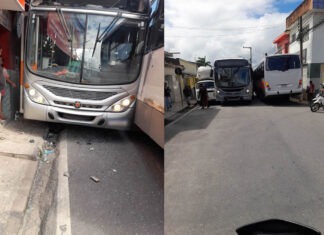 Ônibus colidem na rua do cemitério em São Miguel dos Campos