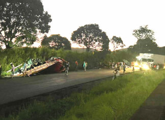 Caminhoneiro fica gravemente ferido em tombamento registrado na BR 101 em Flexeiras
