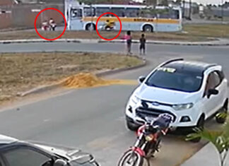 Impacto da motocicleta com as crianças fez seus corpos serem arremessados para longe
