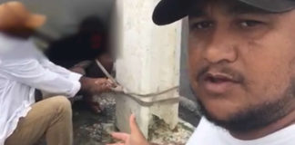 Homem é amarrado por famíliares em poste, fato ocorreu após uma...