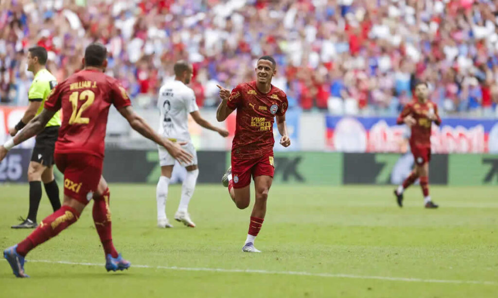 Esquadrão vence 3ª seguida numa Fonte com mais de 45 mil tricolores: 2 a 0 em cima do Santos. Juba e Lucho marcaram para o Bahia, que chega a 36 pontos, segue em 4º do Brasileirão e quinta terá decisão de Copa do Brasil novamente diante da Nação. É pra lotar… pic.twitter.com/kBPvTttrNW