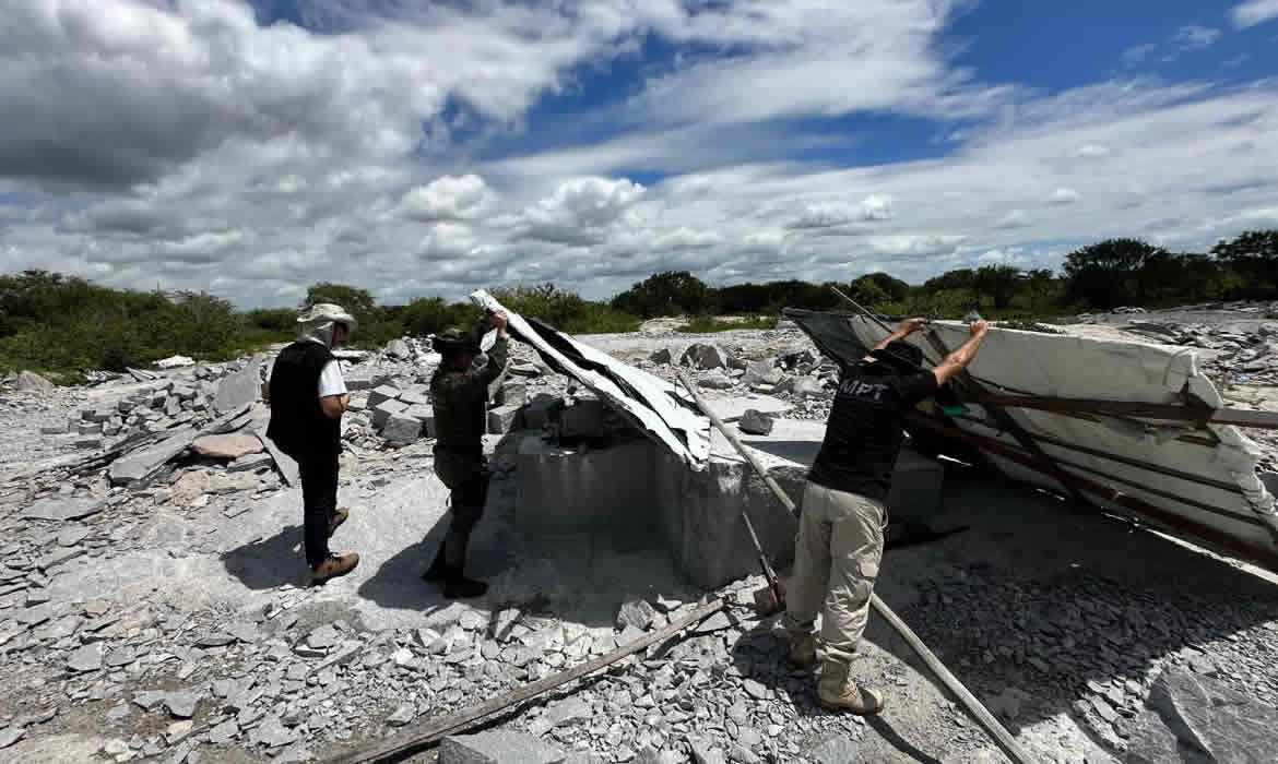 Nessa perspectiva, a equipe Resíduos Sólidos, Extração Mineral e Segurança de Barragens da FPI visitou uma pedreira localizada dentro da Área de Proteção Ambiental (APA) da Serra da Caiçara, em Ouro Branco. Por lá, os técnicos encontraram ferramentas de extração das pedras, ambientes de descanso improvisados e estrutura elétrica para detonação de explosivos. Restos de fogueira recente e garrafa térmica com água fria foram indícios de que trabalhadores tinham passado pelo local pouco antes de a fiscalização chegar.