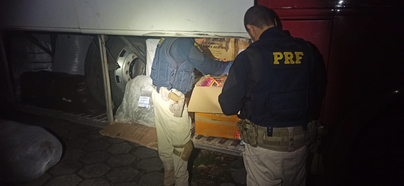 Na sexta-feira (29), por volta das 18h, uma equipe da PRF, em operação conjunta com o canil do BOPE, abordou um veículo MBenz/MPolo, clandestino. Durante revista no interior do ônibus, foram encontradas diversas mercadorias, e, de acordo com o motorista, a carga é originária de São Paulo/SP com destino a várias regiões de Alagoas.