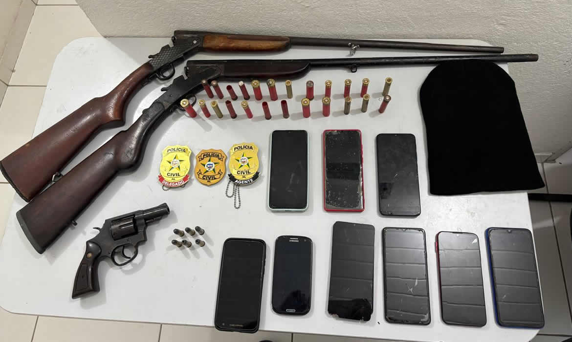 A Polícia Civil de Alagoas (PCAL), por meio da Delegacia de Homicídios da 8ª Região (DHPP), deflagrou nessa quinta-feira (05) a Operação “Areias”, no município de São Luís do Quitunde. A ação resultou na prisão de quatro indivíduos e na apreensão de três armas de fogo, além de munições e aparelhos celulares.