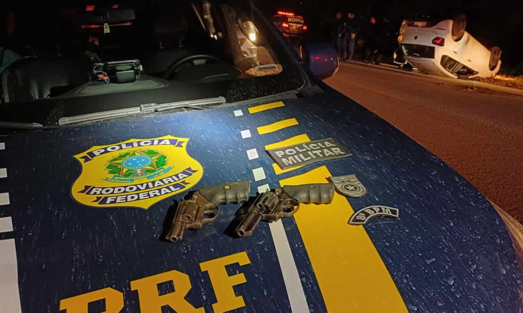 Durante a fuga, o condutor do veículo perdeu o controle da direção, vindo a colidir com uma árvore às margens da via, causando o tombamento do automóvel. Em seguida, os criminosos desembarcaram do carro com armas em punho e continuaram os disparos contra os policiais, que reagiram mais uma vez para repelir a agressão.