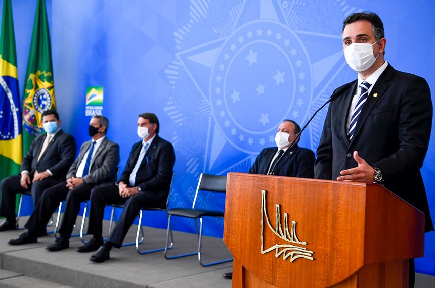 Rodrigo Pacheco participou da solenidade em que aconteceu a sanção presidencial. Ele disse que o Congresso Nacional está disposto a colaborar com o governo para um enfrentamento eficaz e eficiente da pandemia. Também afirmou que a concepção do projeto que deu origem à nova lei evidencia a importância da união em torno da luta contra a covid-19. Segundo Pacheco, o texto foi construído com representantes da base do governo, da oposição e do Ministério da Saúde.