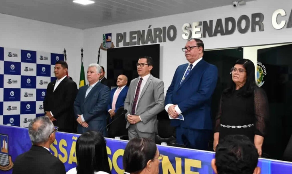 Vereadores presentes: Diney Torres (presidente), José Feitosa (autor da solenidade), Elson Vieira, Wellbert Teles, Alexandre Pereira e Alfredo Moura.