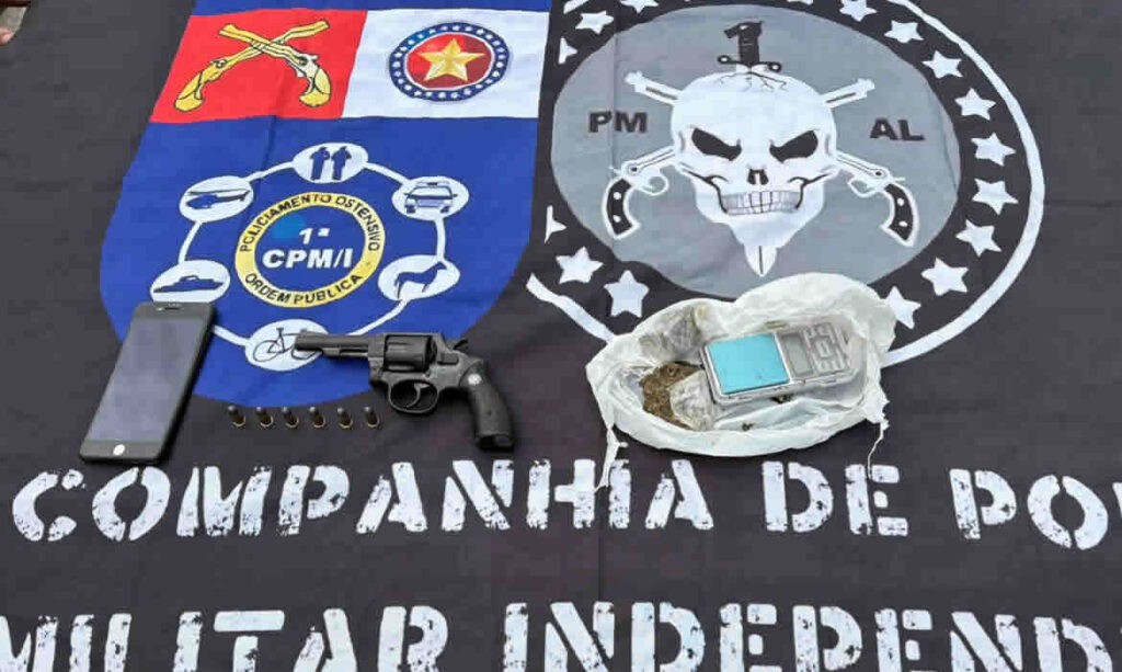 No endereço indicado, identificado como uma casa em construção, os militares encontraram uma bolsa contendo aproximadamente 60 gramas de maconha, um revólver calibre .32 com seis munições intactas, uma balança de precisão e um celular iPhone. O local apresentava sinais de escavação recente, o que levou ao acionamento da guarnição do Canil do 3º Batalhão de Polícia Militar (3º BPM), de Arapiraca, para uma busca minuciosa com cães farejadores.