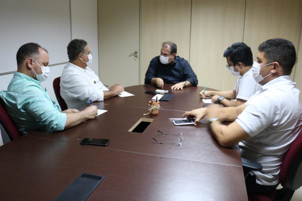 O prefeito George Clemente, o secretário de Infraestrutura, Chiquinho Seabra, o secretário da SEDECTI, Álvaro Leiva, e o secretário de Articulação Política, Jó Clemente, se reuniram esta semana com o secretário do Estado da Fazenda, George Santoro.