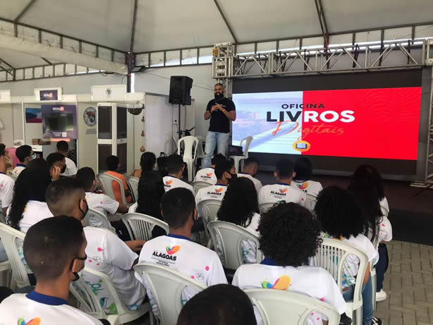 A oficina de livro digitais, com Tiago Mochileiro, também contou com diversos jovens estudantes apaixonados pela literatura e tecnologia.