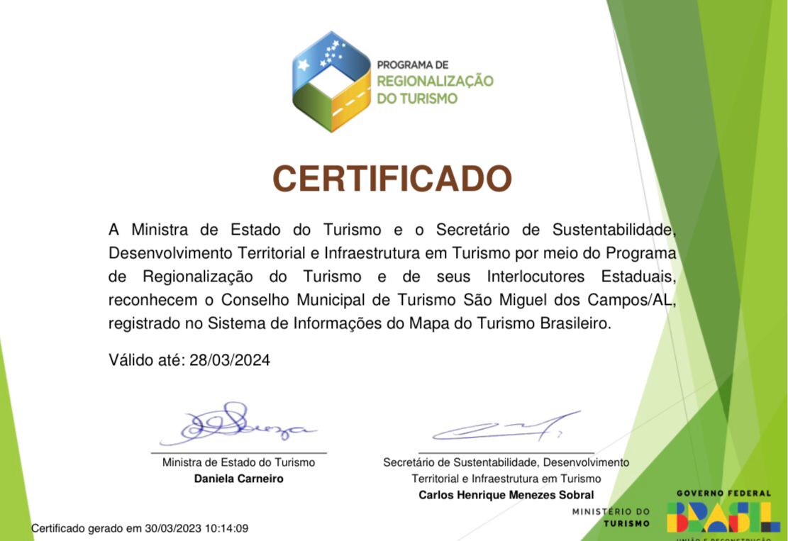 O município de São Miguel dos Campos conseguiu a aprovação para fazer parte do Mapa do Turismo Brasileiro, instrumento que orienta a atuação do Ministério do Turismo no desenvolvimento de políticas públicas.