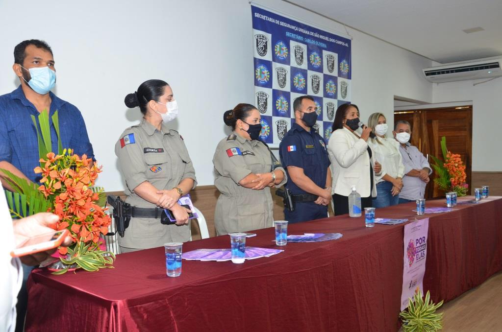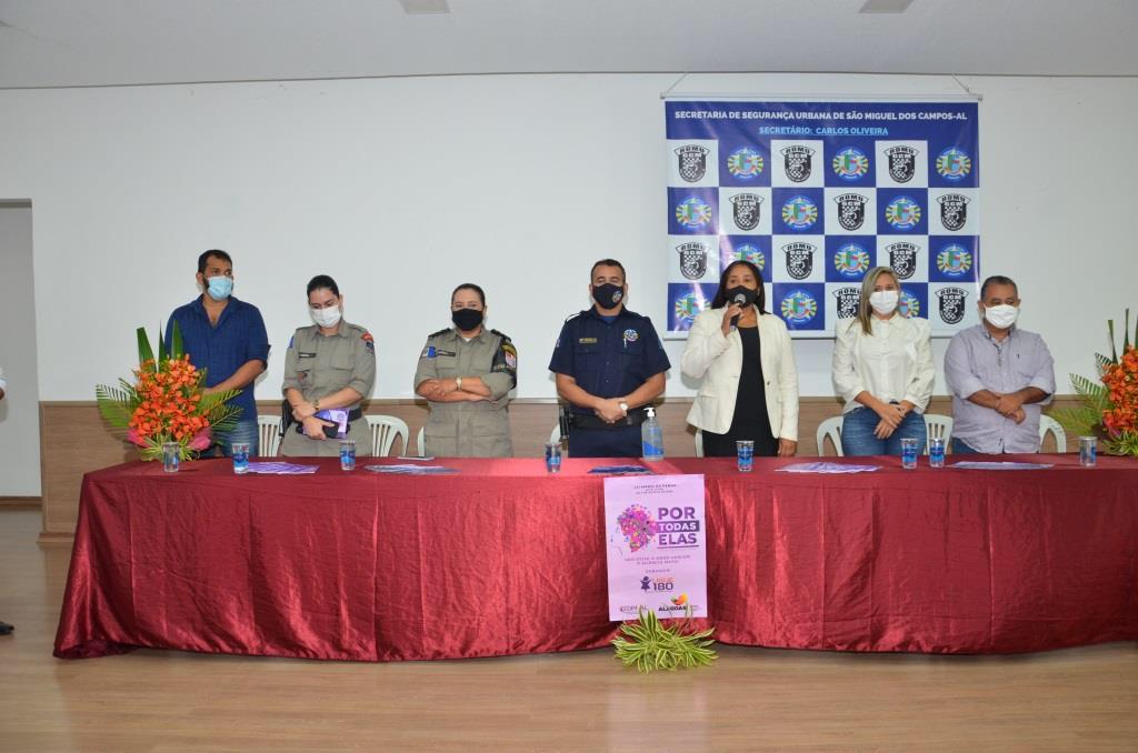 A mesa de honra foi composta pela secretária da Mulher, Quitéria Julião, pelo secretário de Segurança Urbana, Carlos Oliveira, pelo representante do Conselho Tutelar, Sandro Andrade, pela representante do Poder Legislativo, vereadora Simone Lima, pela representante da 1ª Companhia da Polícia Militar de São Miguel, soldada Andrea Silva e pelo chefe de operações da Polícia Civil, Fábio Alves.