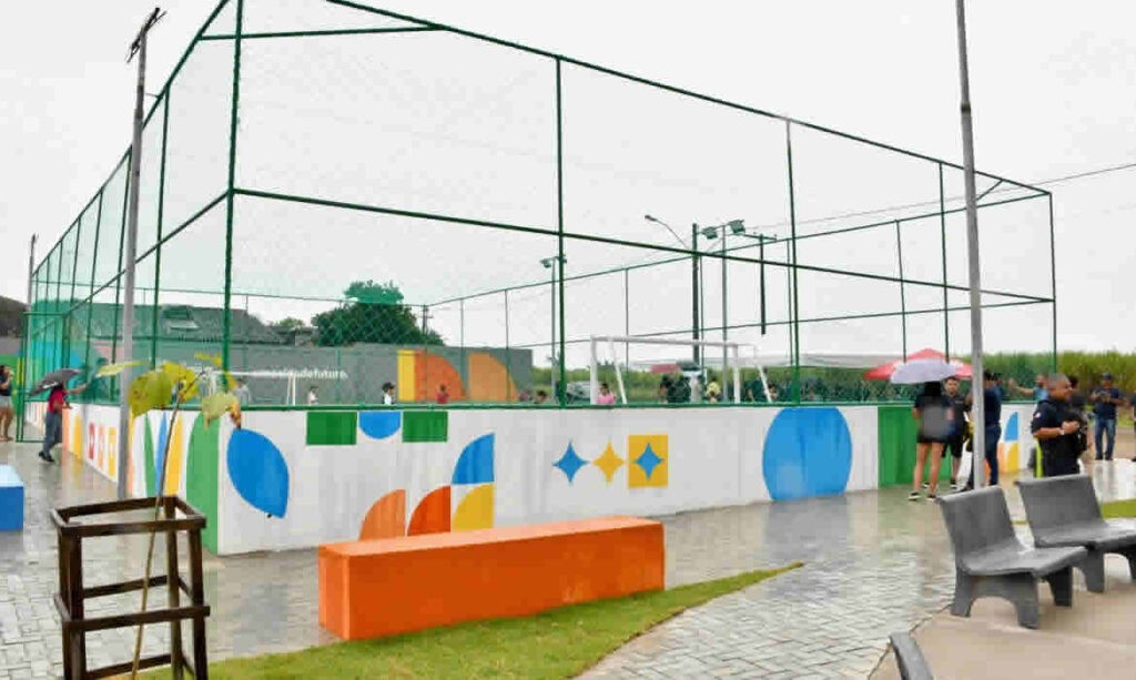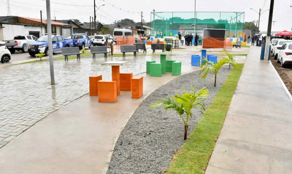 O novo espaço conta com quadra poliesportiva, playground, academia ao ar livre, mesas e bancos de concreto, paisagismo e calçadas com rampas de acessibilidade, oferecendo lazer, esporte e convivência para todas as idades, com segurança e inclusão.