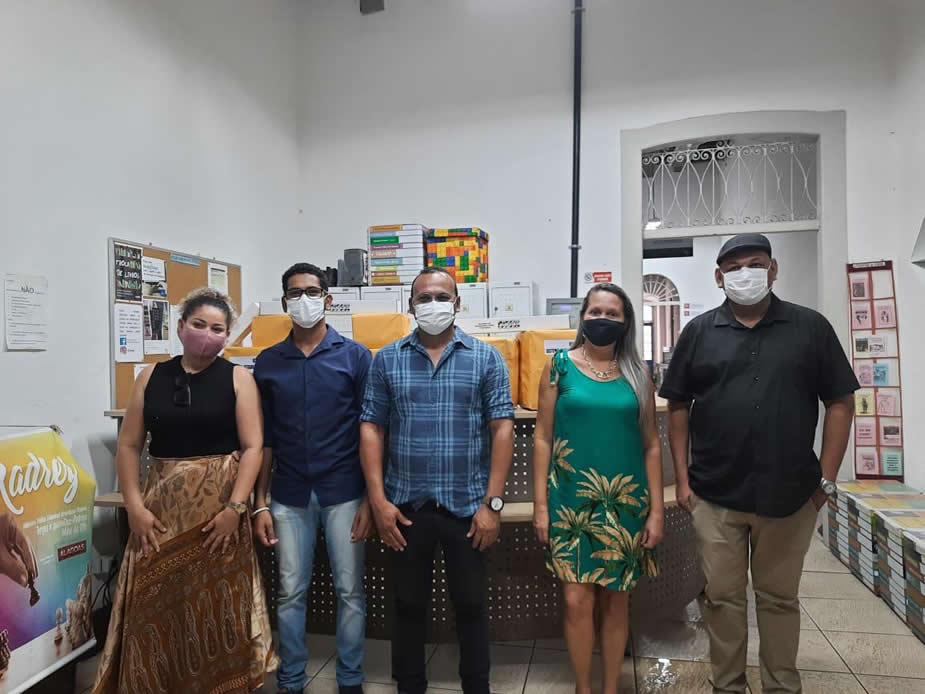 O secretário municipal de Cultura, André Vieira, acompanhado da diretora da Biblioteca Municipal Monsenhor Hildebrando Guimarães, Rita Mendes, e de colaboradores da Secretaria Municipal de Cultura (Secult) recebeu em Maceió, nesta quinta-feira(15), da Secretaria de Estado da Cultura, 200 livros.
