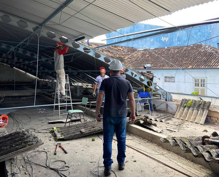 A Escola Mário Soares (antigo Cenecista), recebeu a equipe para uma visita técnica e encontrou o local com péssimas condições: a situação das cobertas, as telhas todas estragadas, muito problema estrutural e pingueiras. Inclusive, essa e outras escolas com esses problemas, passaram por reformas e foram entregues no ano passado.