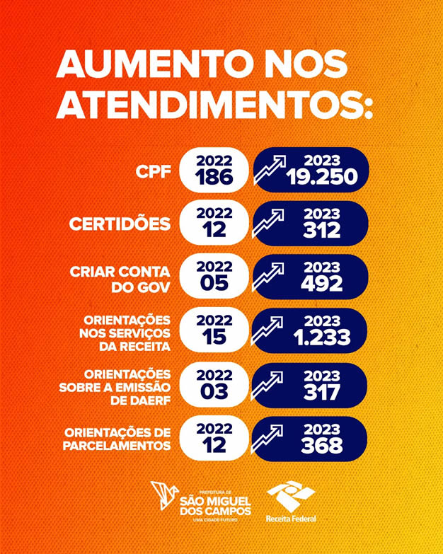 Com um aumento de mais de 35 mil atendimentos em relação ao ano de 2022, a Receita Federal de São Miguel dos Campos teve um número recorde de em 2023: 35.738.