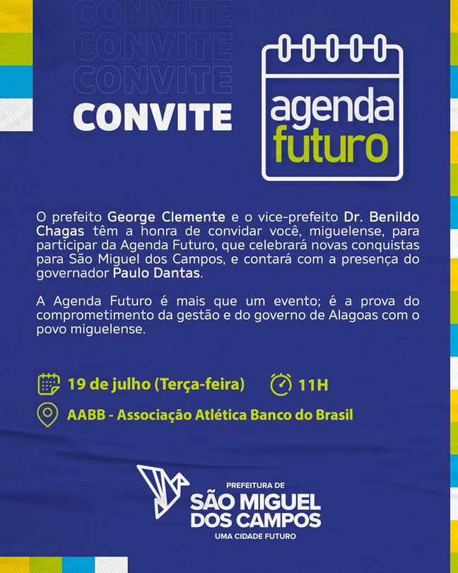 São Miguel dos Campos iniciará nesta terça-feira (19), o evento “Agenda Futuro”, que tem como objetivo celebrar as novidades e melhorias no município, como obras e projetos.